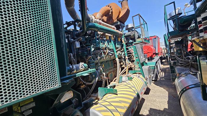 This package is powered by a Caterpillar diesel engine, paired with a Caterpillar transmission to run a 2500 Quintuplex frac pump.
